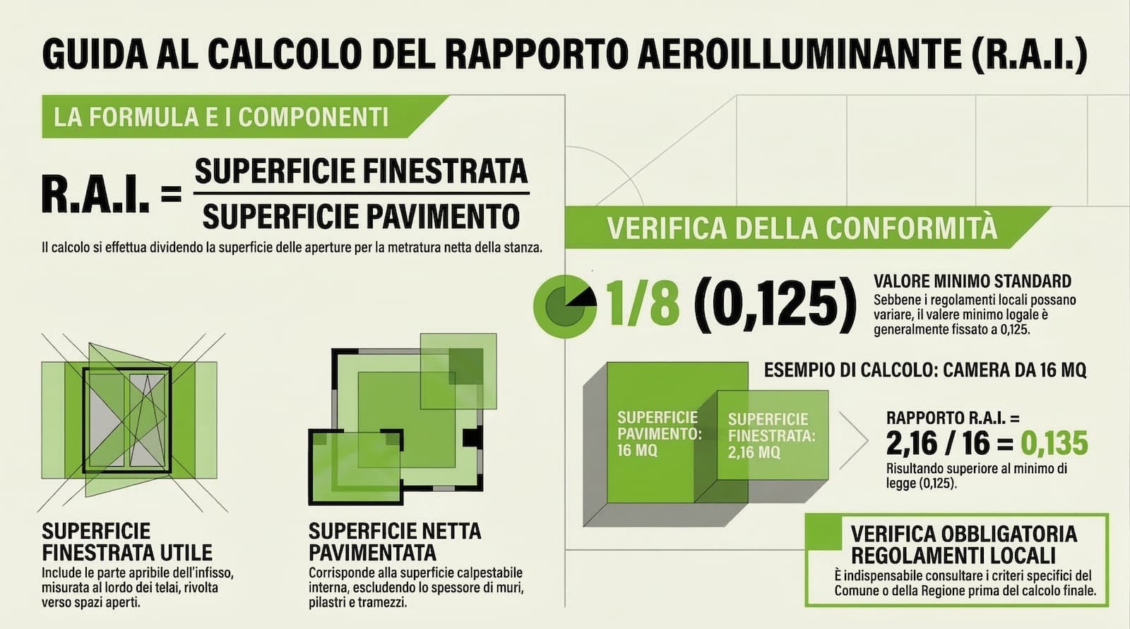 R.A.I. = superficie finestrata utile ÷ superficie netta pavimentata
